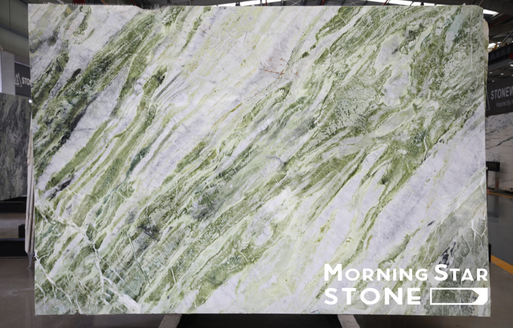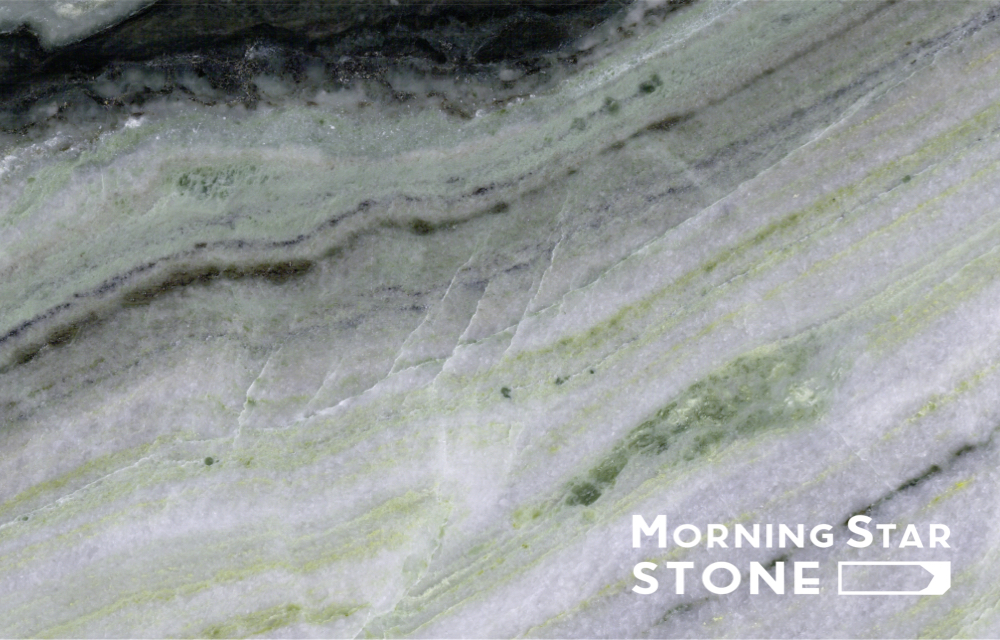 Raggio Verde Marble is known for its striking color. This green marble is typically bright and vivid, with shades of green and white pushing each other like sea waves. This gives the stone an unique and graceful look that is sure to make a statement. Raggio Verde Marble is often used in a variety of applications, including flooring, countertops, and wall cladding.